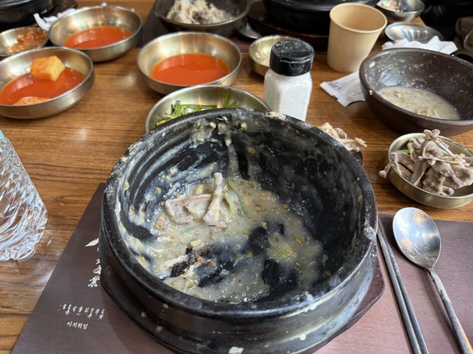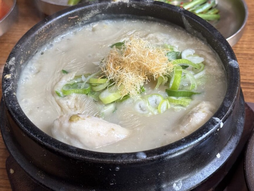 주문한 삼계탕은 걸죽한 국물에 산삼배양근이 토핑으로 올라가 있는 고급스러운 음식이었습니다. 하지만 짧은 점심 시간에 맞춰 먹다 보니 입이 데이는 아쉬움도 있었습니다.