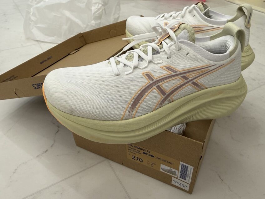 아식스의 젤 님버스 27 4E 모델은 한 시즌 전 출시된 제품입니다. 이 제품은 4E 사이즈에서의 만족감과 가격이 1만원 저렴하여 구매하게 되었습니다.