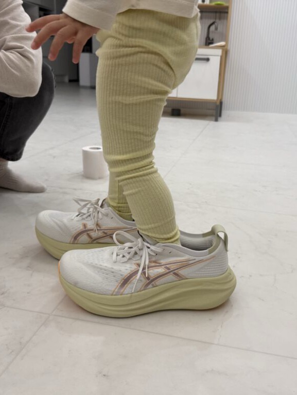 젤 님버스 27은 메모리폼 느낌의 푹신한 착용감을 제공합니다. 반발력보다는 부드럽고 편안한 느낌이 강조되어 있어, 무릎이나 발목에 부담 없는 러닝이 가능할 것으로 기대됩니다.
